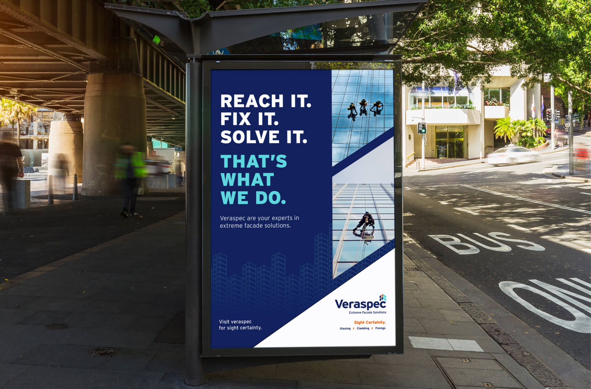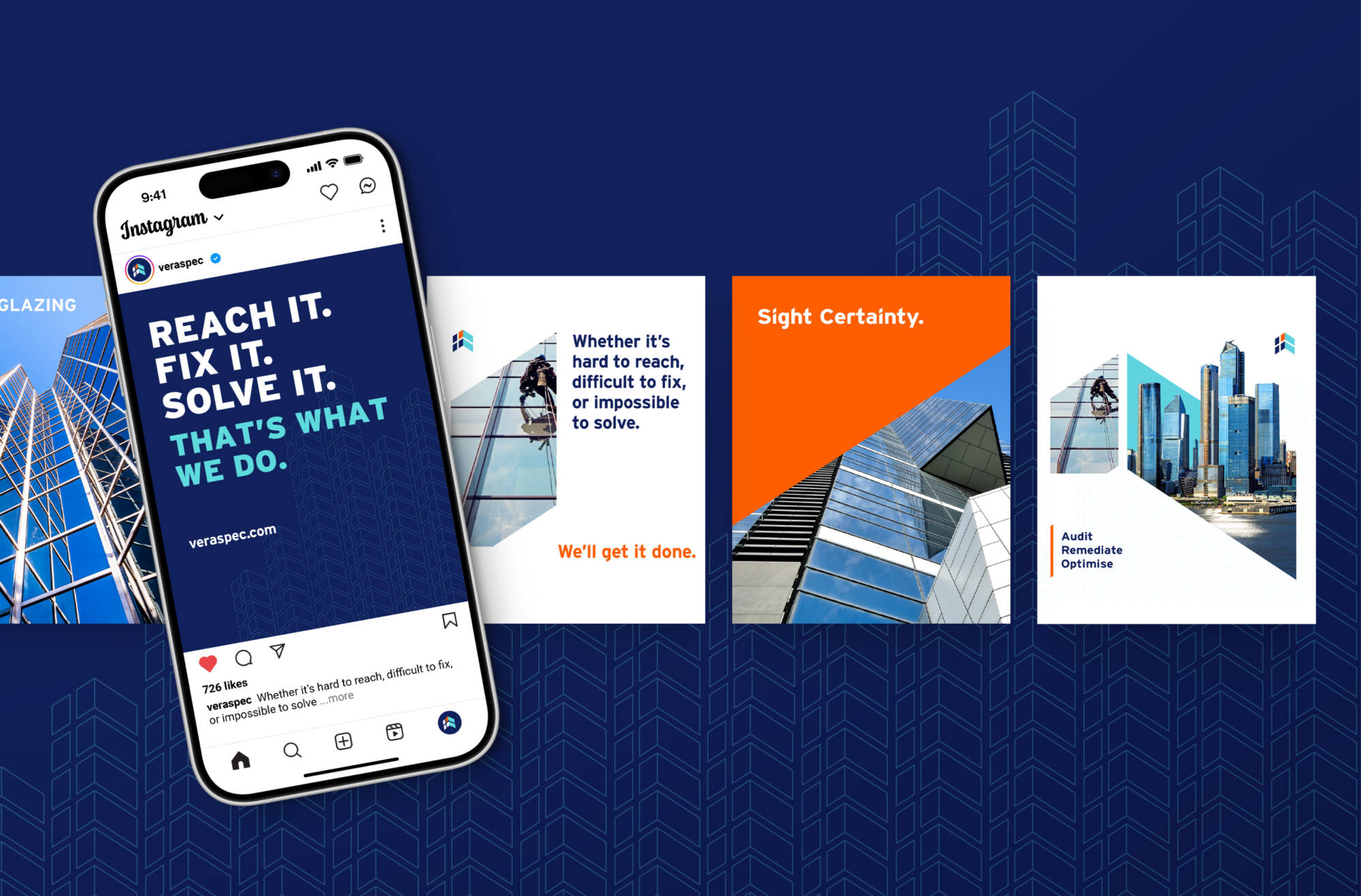 Veraspec needed a visual identity that was highly impactful. We created graphic elements that reflect the unique environment they operate in. Sharp angles symbolise the stunning high-rise buildings, complemented by bold typefaces, vibrant colours, and a certification system that they can own. This system provides a credentialed performance methodology, giving their clients peace of mind and showcasing Veraspec’s quality of work and expertise. The brand is designed to be highly visible, aiming to be recognised throughout Australia and beyond, in partnership with their international brand, Audomas.