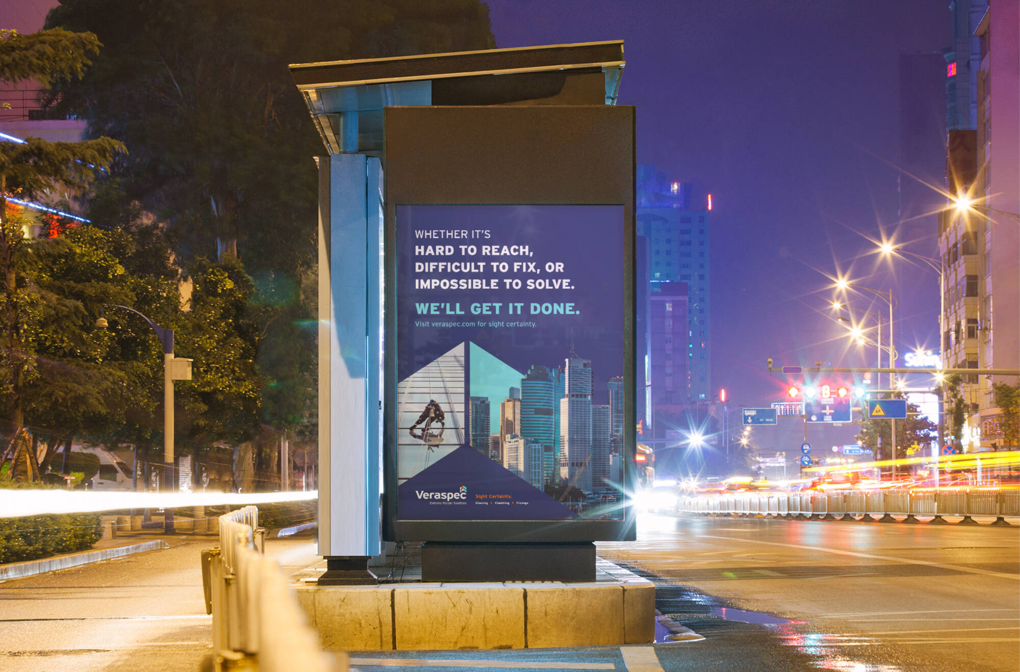It was crafted to not only be easily articulated by varying stakeholder profiles but also position Veraspec as demanding respect through the considered combination of the words Verify + Specify, Vertical + Aspect, Veritas + Specialists. Working on levels and layers that chime mental associations with strong, positive, industry specific language so that whatever angle you look at it, Veraspec are a brand to look up to.