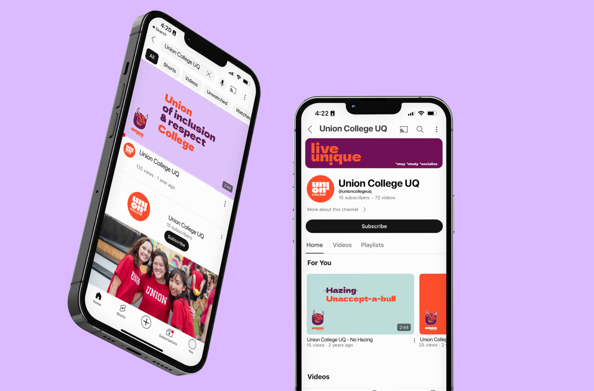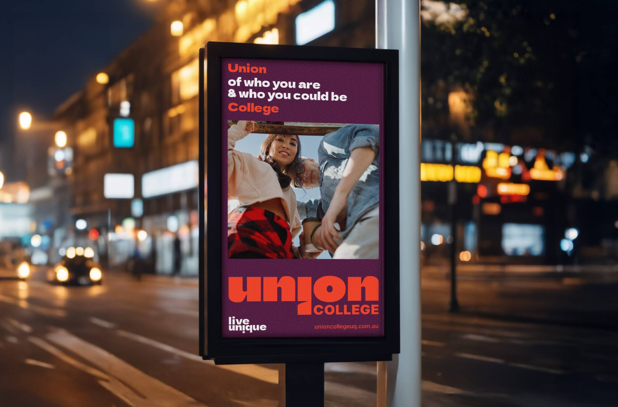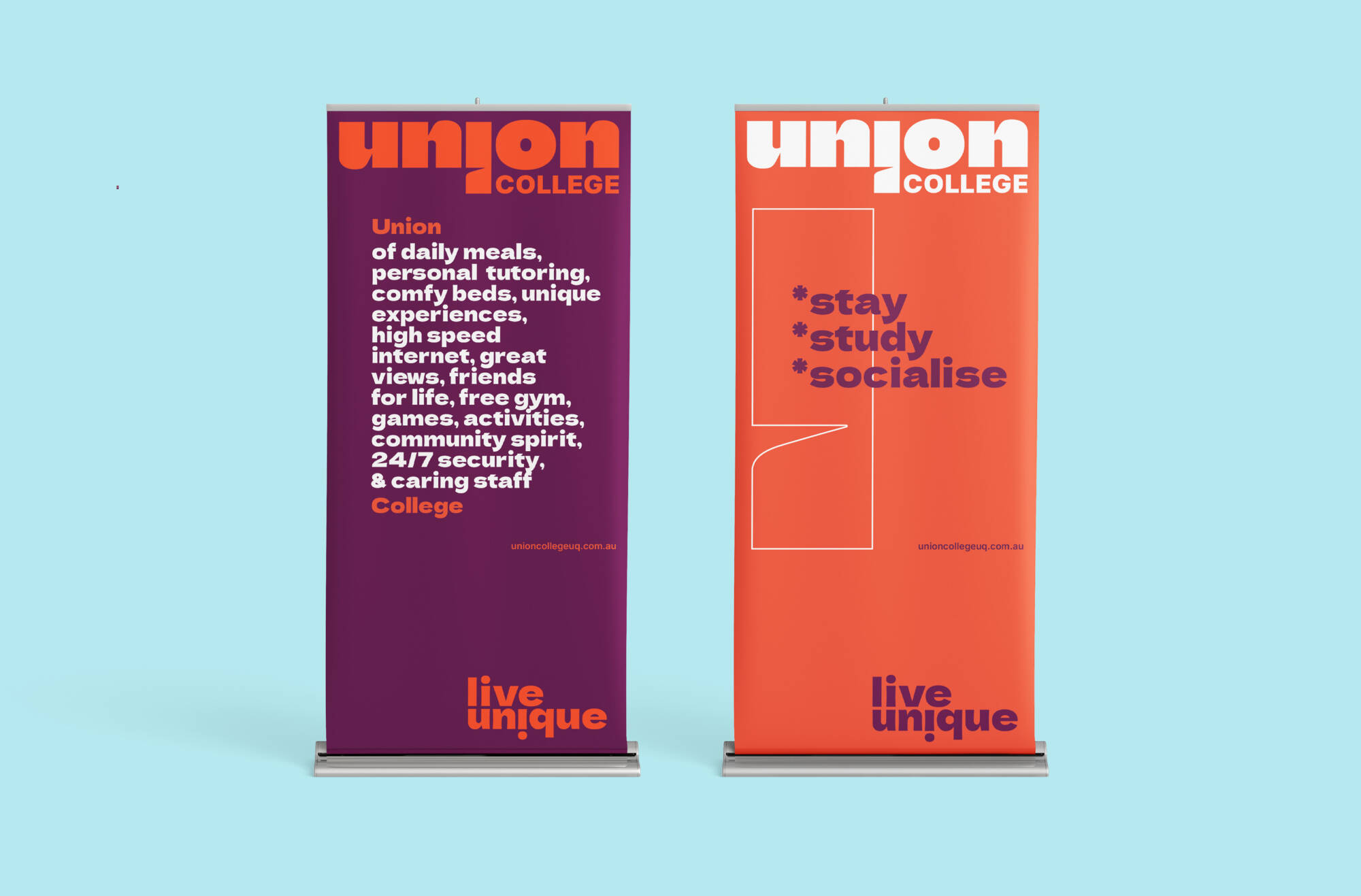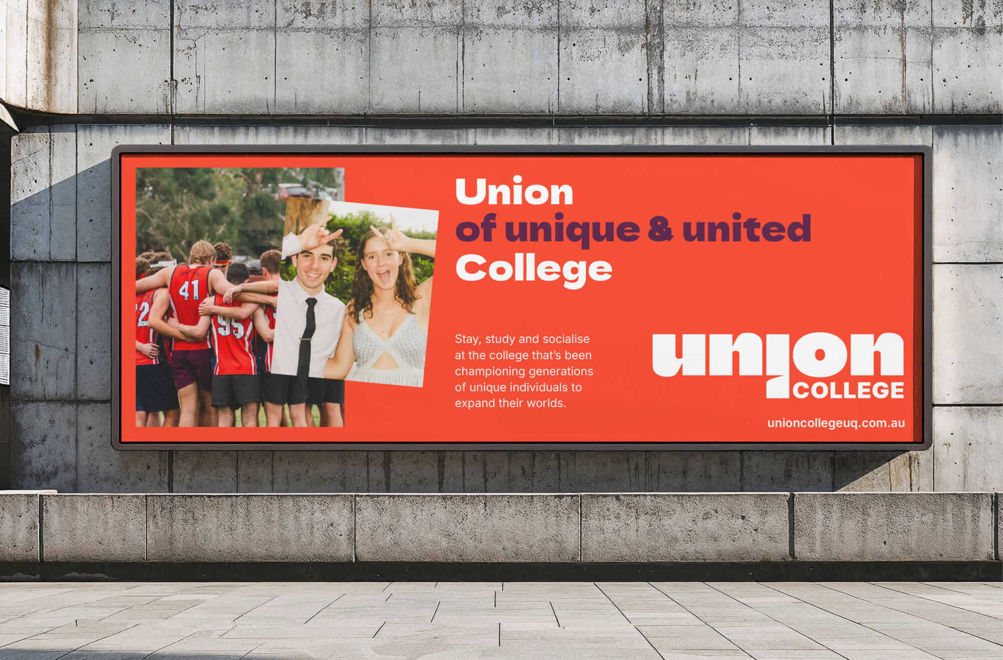 Union College, a residential college at the University of Queensland, has a proud legacy of offering students more than accommodation. Welcoming domestic and international students of all genders from all universities, Union is a hub of individuality and collective energy, where shared experiences inspire growth beyond academics. The college’s brand, however, did not fully reflect this vibrant community. Union partnered with DAIS to create a bold new strategy that would celebrate today’s diverse community and future student bodies for generations to come.