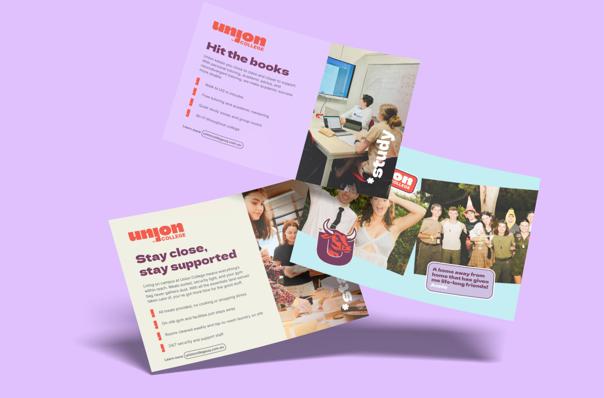Union College, a residential college at the University of Queensland, has a proud legacy of offering students more than accommodation. Welcoming domestic and international students of all genders from all universities, Union is a hub of individuality and collective energy, where shared experiences inspire growth beyond academics. The college’s brand, however, did not fully reflect this vibrant community. Union partnered with DAIS to create a bold new strategy that would celebrate today’s diverse community and future student bodies for generations to come.